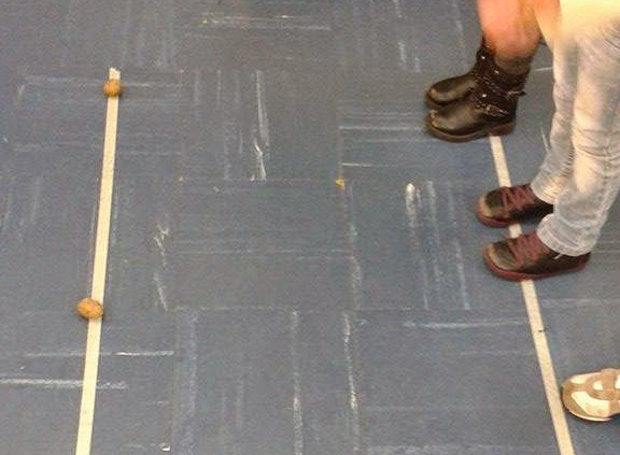 Όποιο καρύδι πετύχει και το βγάλει έξω από τη γραμμή το κερδίζει και δοκιμάζει ξανά σημαδεύοντας κάποιο άλλο καρύδι. Αν αστοχήσει, συνεχίζει ο επόμενος παίκτης. Το παιχνίδι συνεχίζεται μέχρι να βγουν από τη γραμμή όλα τα καρύδια.