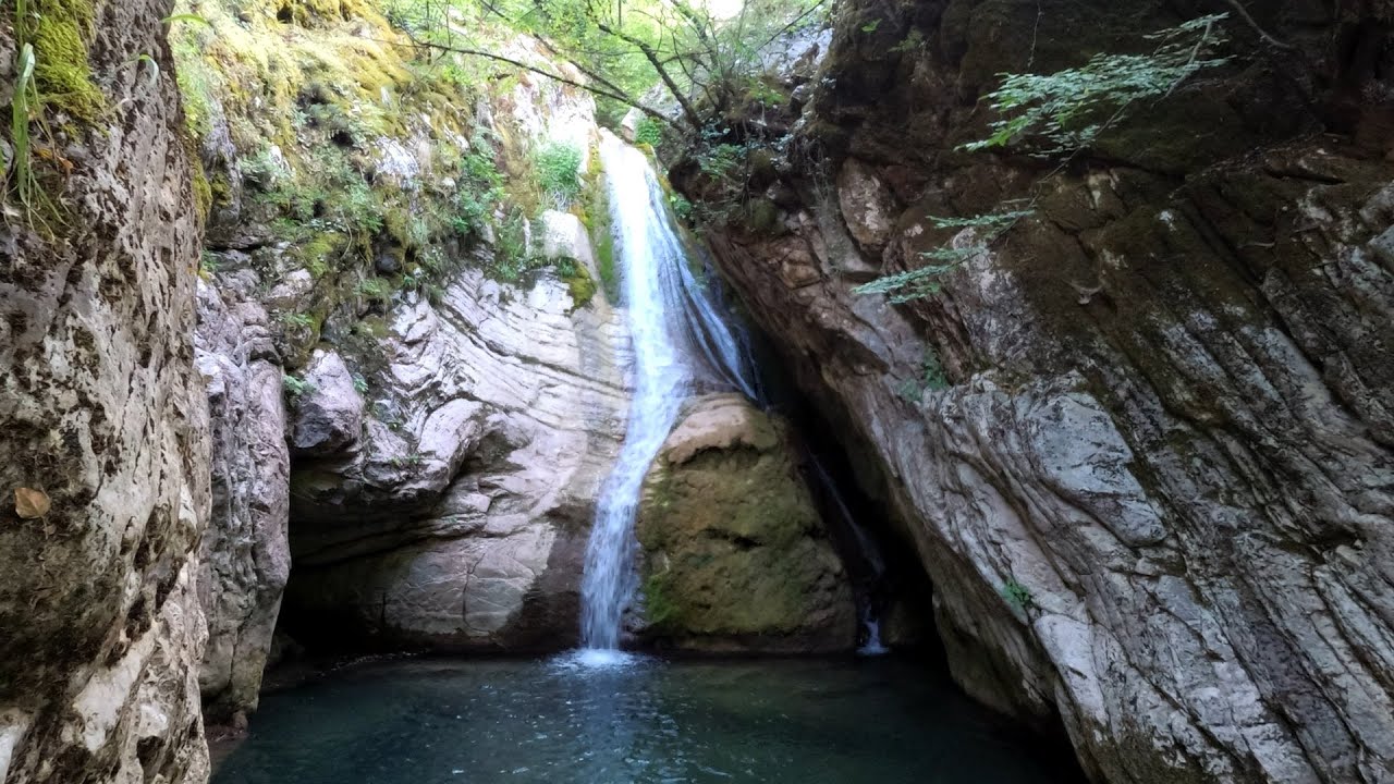 Ακολουθώντας την αντίθετη πορεία των νερών του ποταμού, σε μικρή απόσταση, ο επισκέπτης συναντά μια μικρή ρεματιά, που οδηγεί σε μια βαθύσκιωτη τοποθεσία, γεμάτη πελώρια πλατάνια και άφθονα τρεχούμενα νερά. Ο εντυπωσιακός καταρράκτης που σχίζει τον βράχο, ρέει από ύψος 25 με 30 μέτρων, δημιουργώντας τρεις μικρούς καταρράκτες και τρεις μικρές φυσικές λίμνες με υπέροχα χρώματα και μαγικές εικόνες.