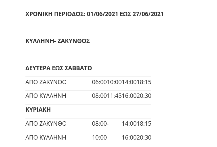 2. Κάθε Σάββατο δεν θα εκτελούνται τα δρομολόγια με ώρα αναχώρησης 14:00 από Ζάκυνθο και