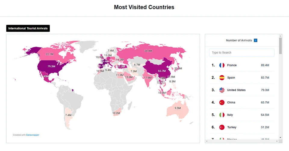 Αυτές είναι οι χώρες με τις περισσότερες επισκέψεις στον κόσμο: