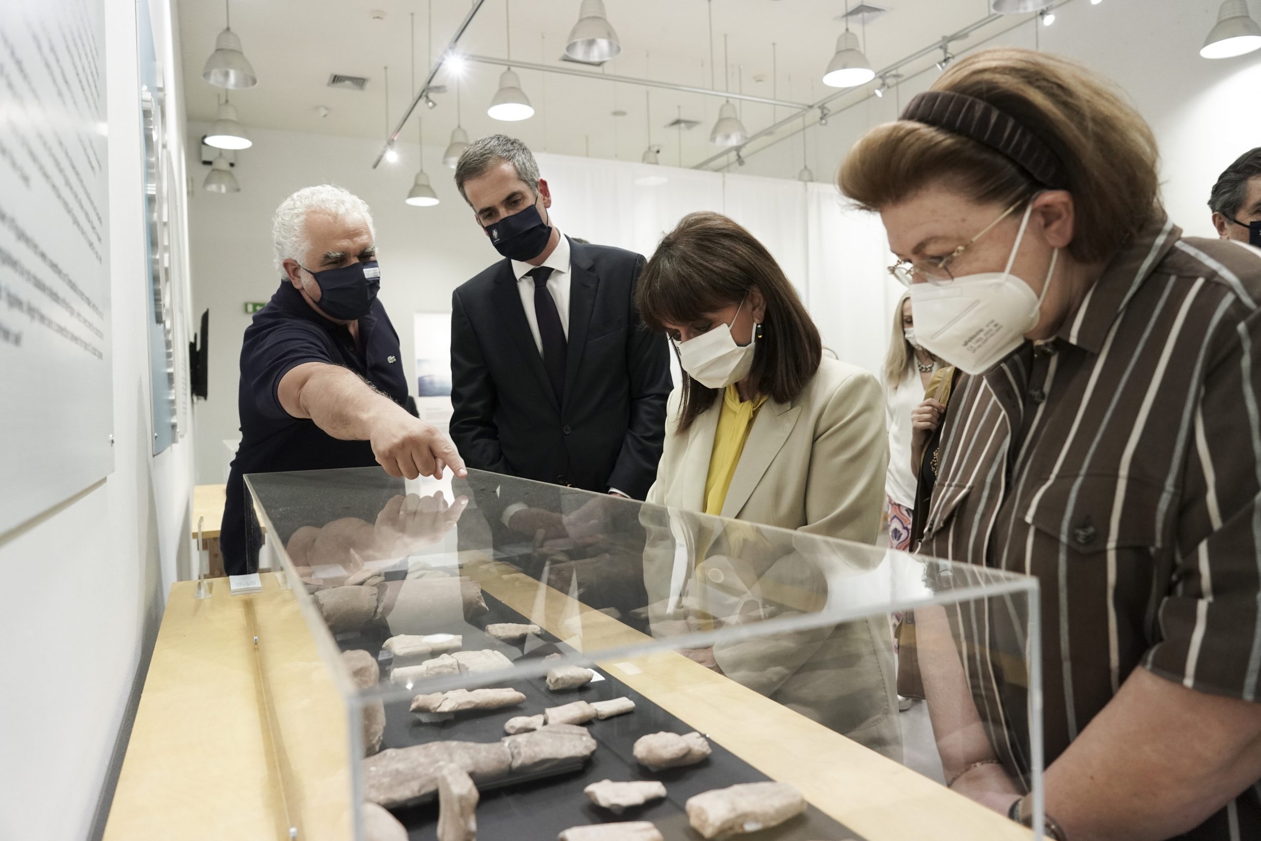 Τα εγκαίνια της έκθεσης «δες ΑΠΕΝΑΝΤΙ. Έναν οικισμό στην Κέρο 4.500 χρόνια πριν», που φιλοξενεί στην Πινακοθήκη του Δήμου Αθηναίων σπουδαία αρχαιολογικά ευρήματα από την Κέρο και το Δασκαλιό, πραγματοποιήθηκαν παρουσία της Πρόεδρος της Δημοκρατίας κ. Κατερίνας Σακελλαροπούλου, της υπουργού Πολιτισμού κ. Λίνας Μενδώνη και του Δημάρχου Αθηναίων κ. Κώστα Μπακογιάννη.