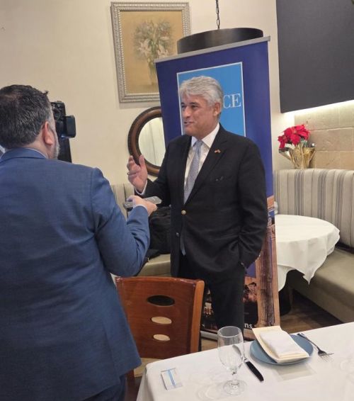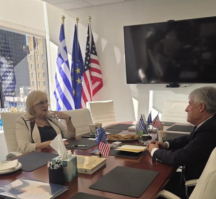Από τη συνάντηση του κου Φιορεντίνου με την Πρόεδρο του Hellenic American Society, Ευτ. Πυλαρινού.