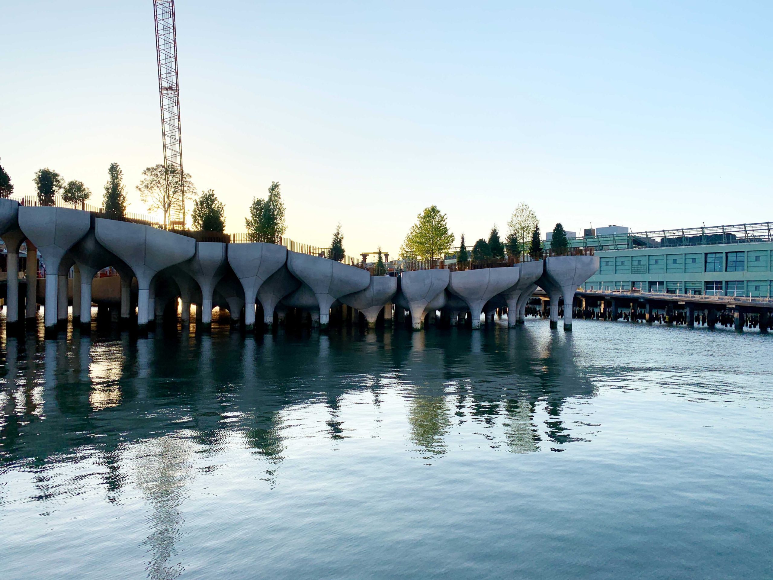 Ο Χέδεργουικ οραματίστηκε μια δομή που μοιάζει με έναν ζωντανό οργανισμό που αναδύεται από το νερό. Συνεργάστηκε με την τεχνική εταιρεία Arup για να δημιουργήσει τις 280 κολόνες από μπετόν που σχηματίζουν τη βάση. Κάθε κολόνα έχει ένα ελαφρώς διαφορετικό μέγεθος και σχήμα, με τις προδιαγραφές να υπολογίζονται από τον υπολογιστή προκειμένου να υποστηρίξει το βάρος τού τι θα είναι επάνω του -ένας λόφος, ένα θέατρο, ένα μονοπάτι. Οι κατασκευές αυτές από σκυρόδεμα αναμειγνύονται με τις αρχικές ξύλινες κολόνες της προβλήτας, παρέχοντας ένα επιπλέον θεμελιώδες στρώμα και διατηρώντας τον υποβρύχιο βιότοπο για υδρόβια ζωή.
