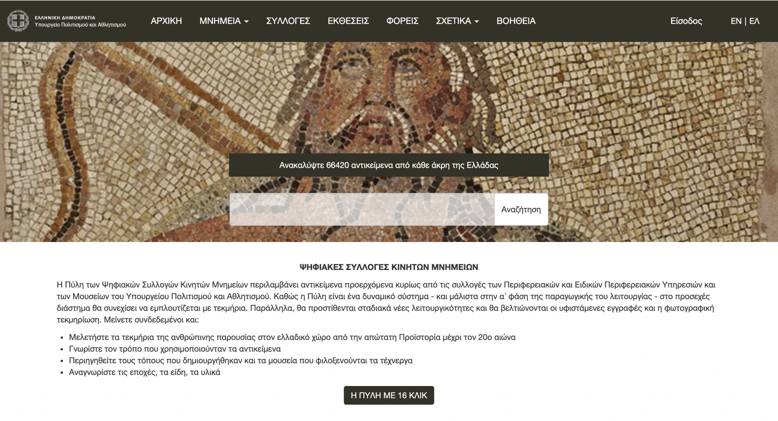 66420 αρχαία αντικείμενα από όλη την Ελλάδα μπορείτε να ακακαλύψετε πλέον μέσω της της Διαδικτυακής Πύλης των Ψηφιακών Συλλογών Κινητών Μνημείων του Υπουργείου Πολιτισμού και Αθλητισμού.
