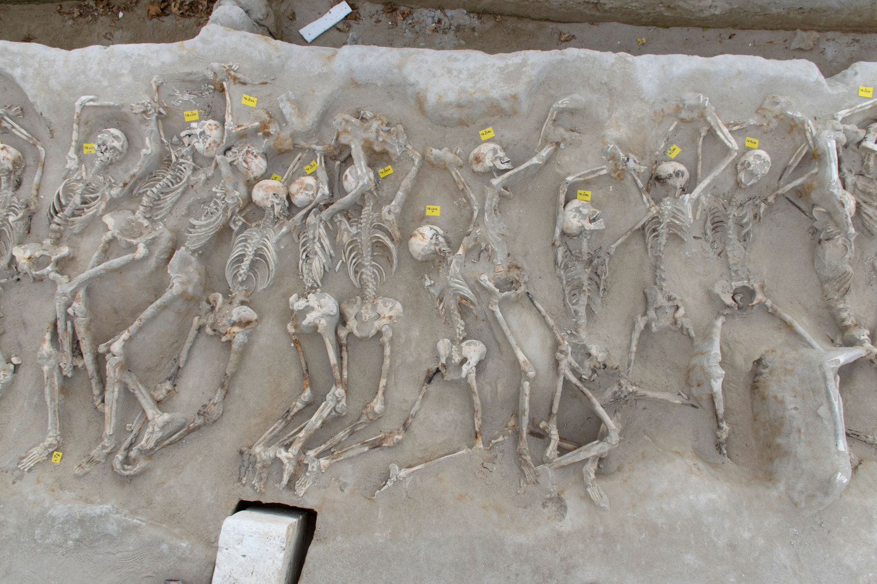 Η μουσειολογική και μουσειογραφική προσέγγιση εξετάζει τον αρχαιολογικό χώρο ως ιστορικό τόπο, εστιάζοντας σε ένα μοναδικό εύρημα που συνδέεται με ένα σημαντικό ιστορικό γεγονός. Η κατά χώραν έκθεση του ευρήματος αποτελεί μια σπάνια περίπτωση στον ελλαδικό χώρο. Βασική αρχή είναι να αποδοθεί η ιστορική σημασία του ευρήματος με σεβασμό προς τους νεκρούς. Το υπό κατασκευή κτήριο ανάδειξης των αρχαιοτήτων καλύπτει 920 τ.μ. περίπου, και έχει διακριτή ταυτότητα και λιτή μορφή. Οι επισκέπτες οδηγούνται καθοδικά προς τον ηµιυπαίθριο κυλινδρικό χώρο που ξεκινά από τη στάθµη του εδάφους και βυθίζεται σταδιακά. Ο αρχιτεκτονικός σχεδιασμός του κτηριακού κελύφους στοχεύει στη δημιουργία ενός χώρου που προσκαλεί τον επισκέπτη να ενηµερωθεί για τα ανασκαφικά ευρήµατα, αλλά και να προετοιµαστεί για την ορθή ανάγνωση της κατά χώραν διατηρημένης οµαδικής ταφής, µέσω της σταδιακής ανακάλυψης της πληροφορίας, αλλά και της κατανόησης της ατµόσφαιρας του χώρου. Στον υπόγειο χώρο, τα σκελετικά κατάλοιπα -σε στάθμη -3.75 μ., θα είναι ορατά από δύο περιοχές, μέσω μεγάλων υαλόφρακτων ανοιγμάτων. Ο χώρος των σκελετών δεν είναι επισκέψιμος από το κοινό, απαιτώντας για την προστασία τους, ελεγχόμενες συνθήκες.